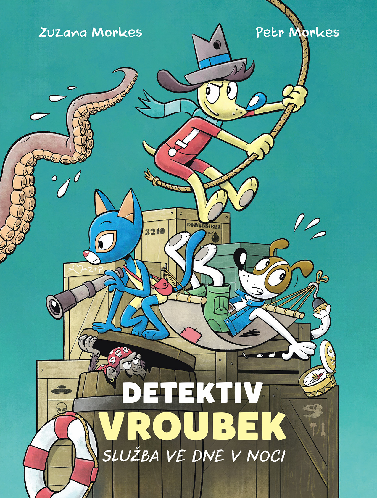Přes 30 detektivních případů, stovky ilustrací a jedna bystrá hlava – ta tvoje! Když z námořní lodi zmizí kapitán Ray Nock, Vroubek a jeho tým tě potřebují. Čelit pirátským opicím, šišlavým upírům, špenátové mafii nebo žábám z Marsu nebude snadné, ale cíl je jasný: odhalit falešné stopy, shromáždit důkazy a usvědčit pachatele. Přidej se k Vroubkovi, Čendovi a Hermíně a táhněte za jeden provaz!