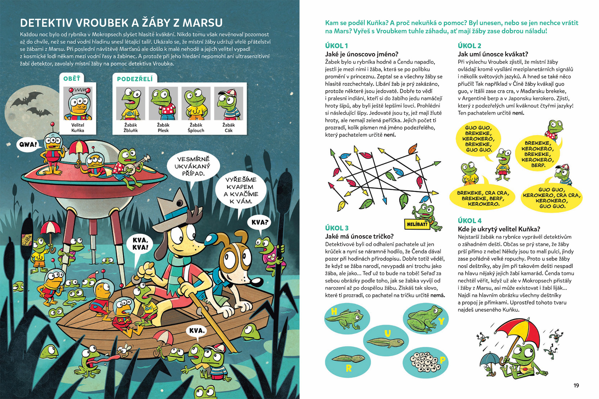 Kniha pro děti od 6 let plná hádanek, kvízů a luštění. Detektiv Vroubek, je známý čtenářům časopisu Čtyřlístek i Čtyřlístek Speciál. Spoluautor Petr Morkes, který stál také u zrodu série s komisařem Vrťapkou, přináší chytrou zábavu a originální ilustrace.