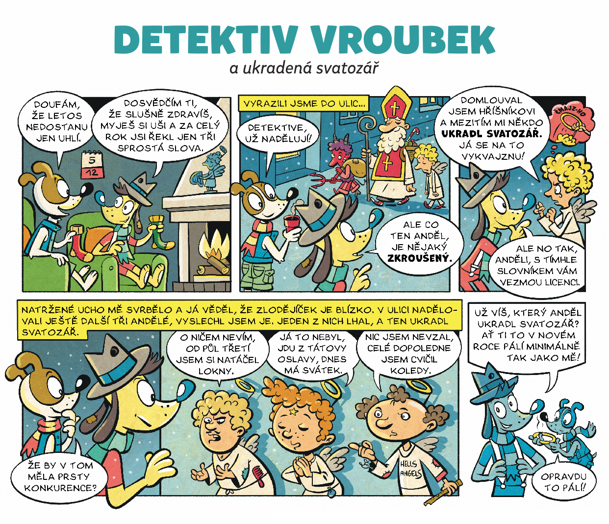 Kdo si bude chtít ukrátit čas nebo vyzkoušet své "detektivní schopnosti", může se pustit do lušticího komiksu Detektiv Vroubek a ukradená svatozář.